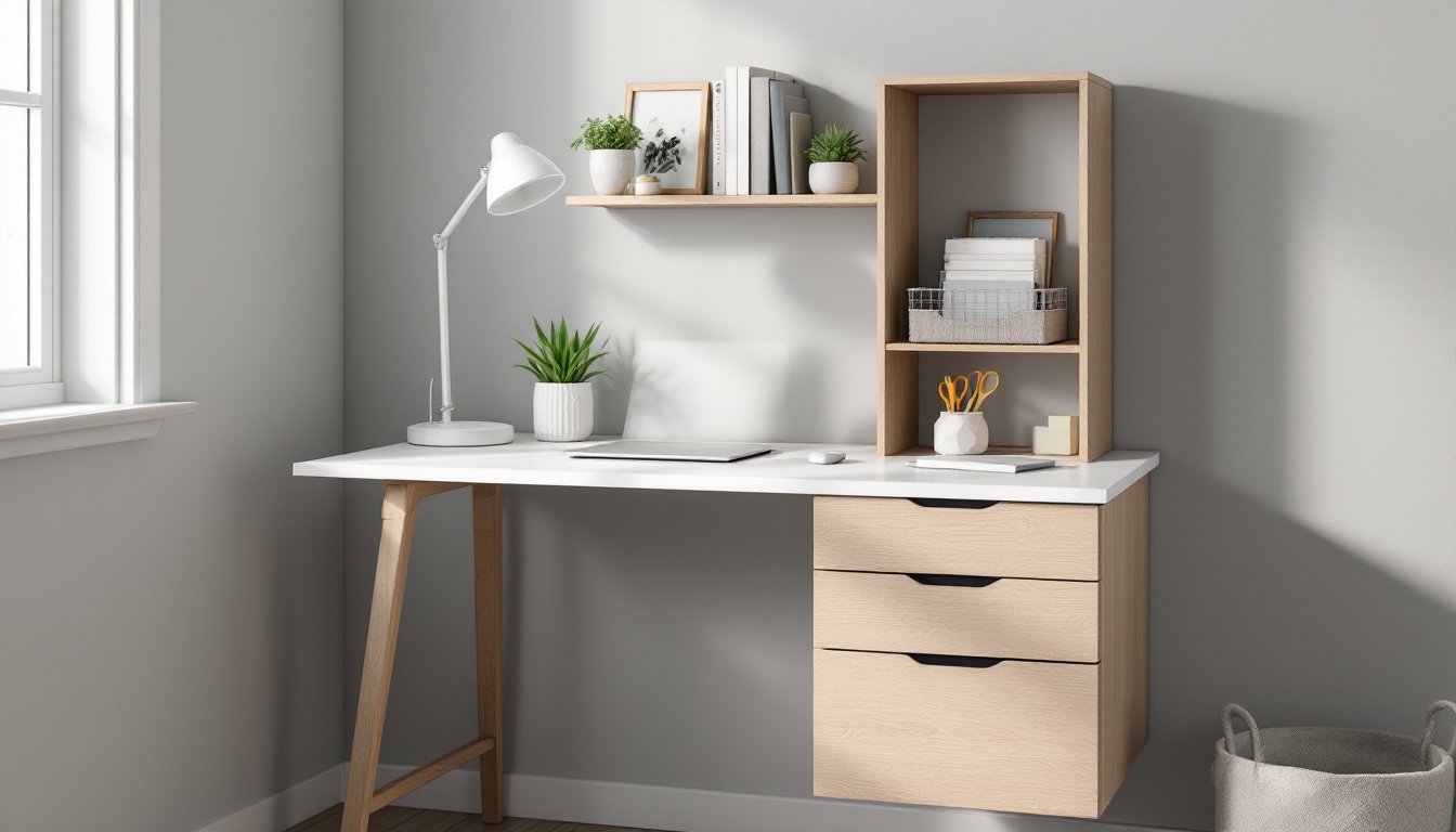 Floating desks mount directly to wall studs, eliminating legs and freeing up floor space for storage bins or a small filing cabinet underneath. Most floating desks run 36 to 48 inches wide and 16 to 20 inches deep, shallower than traditional desks, but adequate for a laptop and notebook.